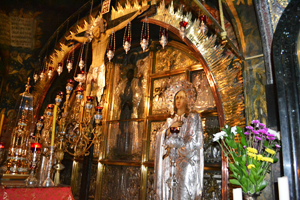 Далее – Голгофа,где был распят Христос. Гробница пуста, потому что Его там нет, ОН воскрес!
