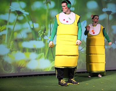 Это была весёлая театральная постановка о приключениях двух гусениц, одна из которых жаждала чего-то нового. Но невероятного и несбыточного по представлениям другой гусеницы.