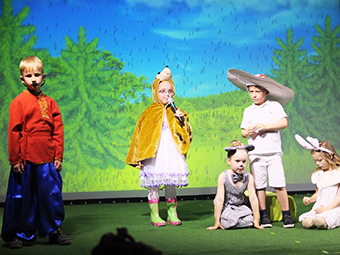 В сюжет действия органично вплелись танцевальные номера, различные сценки, поставленные самими детьми.