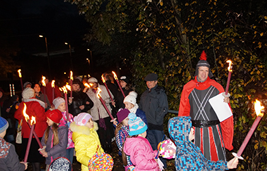 По дороге наше шествие несколько раз останавливалось и Святой Мартин (Дмитрий Альбоха) рассказывал детям разные истории и задавал им вопросы, на которые дети с восторгом отвечали.